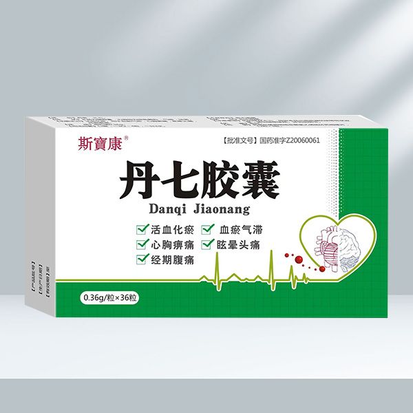 通用名称丹七胶囊汉语拼音danqijiaonang品牌名称斯寳康注册商标斯寳康医保产品是功能主治活血化瘀。用于血瘀气滞,心胸痹痛。眩晕头痛,经期腹痛。主要成分丹